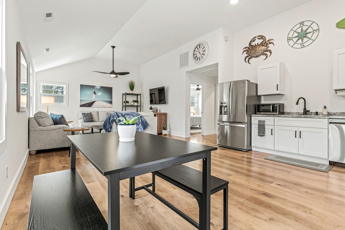 North Duck Bungalow is located in the gorgeous town of Duck - a 3-minute walk to the beach and a 3-minute drive to Downtown Duck! This bungalow offers a comfortable living room with a smart TV, a fully stocked kitchen, and 1 bedroom with a King. Guests will also get access to the community pool (open seasonally) which is just steps from the bungalow. Come enjoy North Duck Bungalow with your friends and family - we would love to host you!