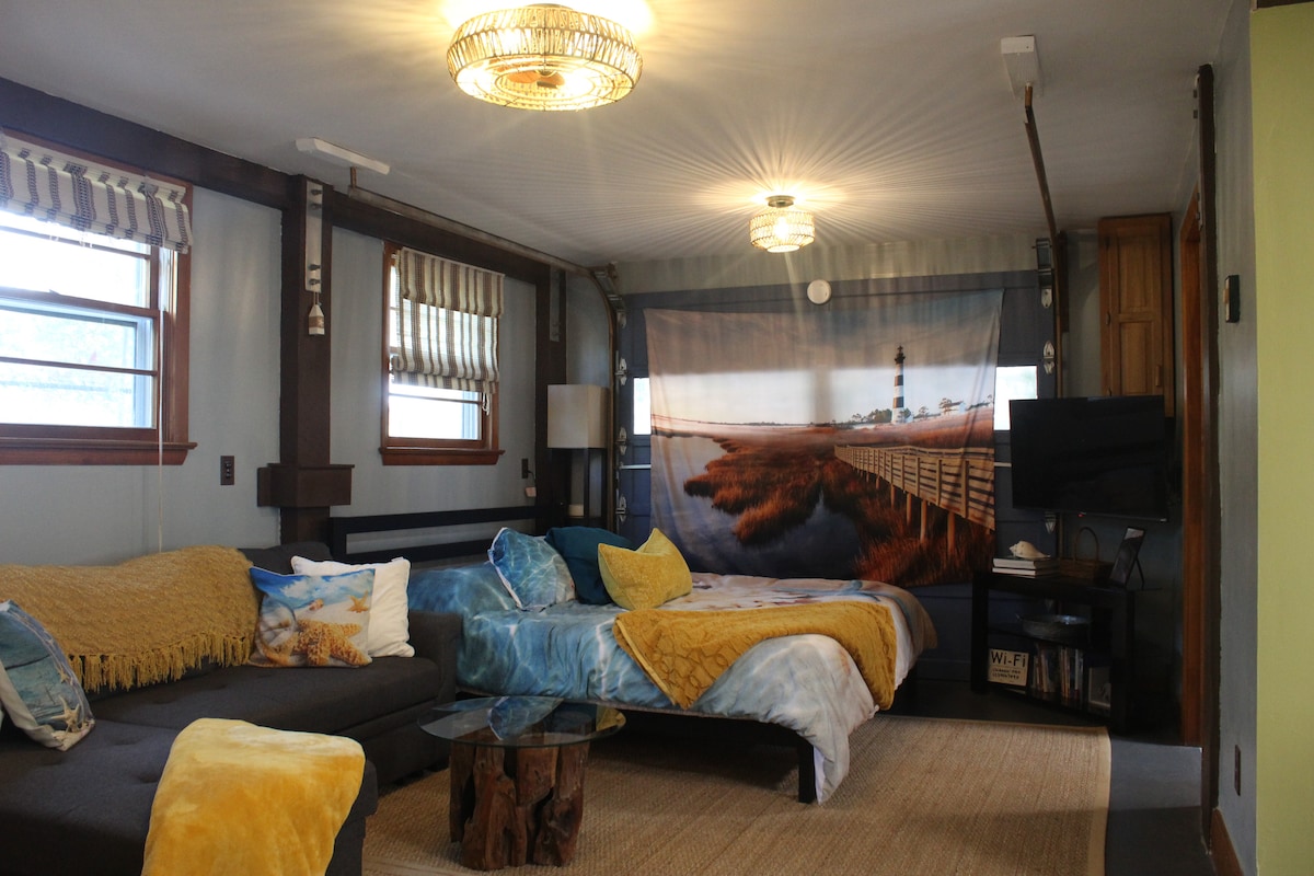 Unwind and enjoy a private stay in the heart of Kill Devil Hills. Located at milepost 9.5, our detached above garage apartment is the perfect coastal escape that still feels like home. Located in the center of a quiet neighborhood, we are only a short walk, bike ride, or drive to many local restaurants, shops, attractions, and the beach. We have poured so much love into this space in hopes that travelers can experience the joy that the Outer Banks brings to us every single day.