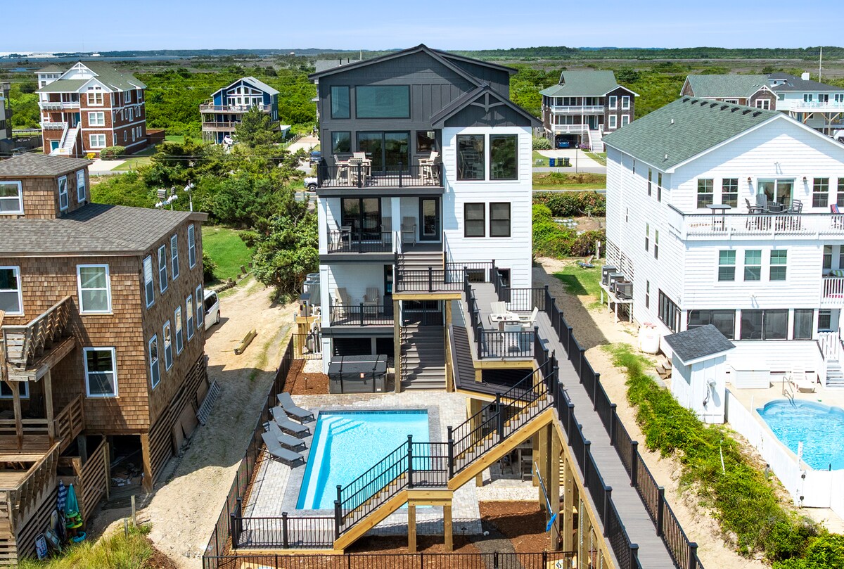 Welcome to Your Ultimate Sound-Front Escape! Perched high above the Currituck Sound, this stunning retreat offers panoramic waterfront views and endless entertainment. Lounge by the infinity pool, soak in the hot tub, or sauna or challenge friends to a game in the expansive game room. With a spacious open-concept design, multiple indoor and outdoor gathering spaces, and tons of amenities, this home is perfect for an unforgettable Outer Banks getaway.