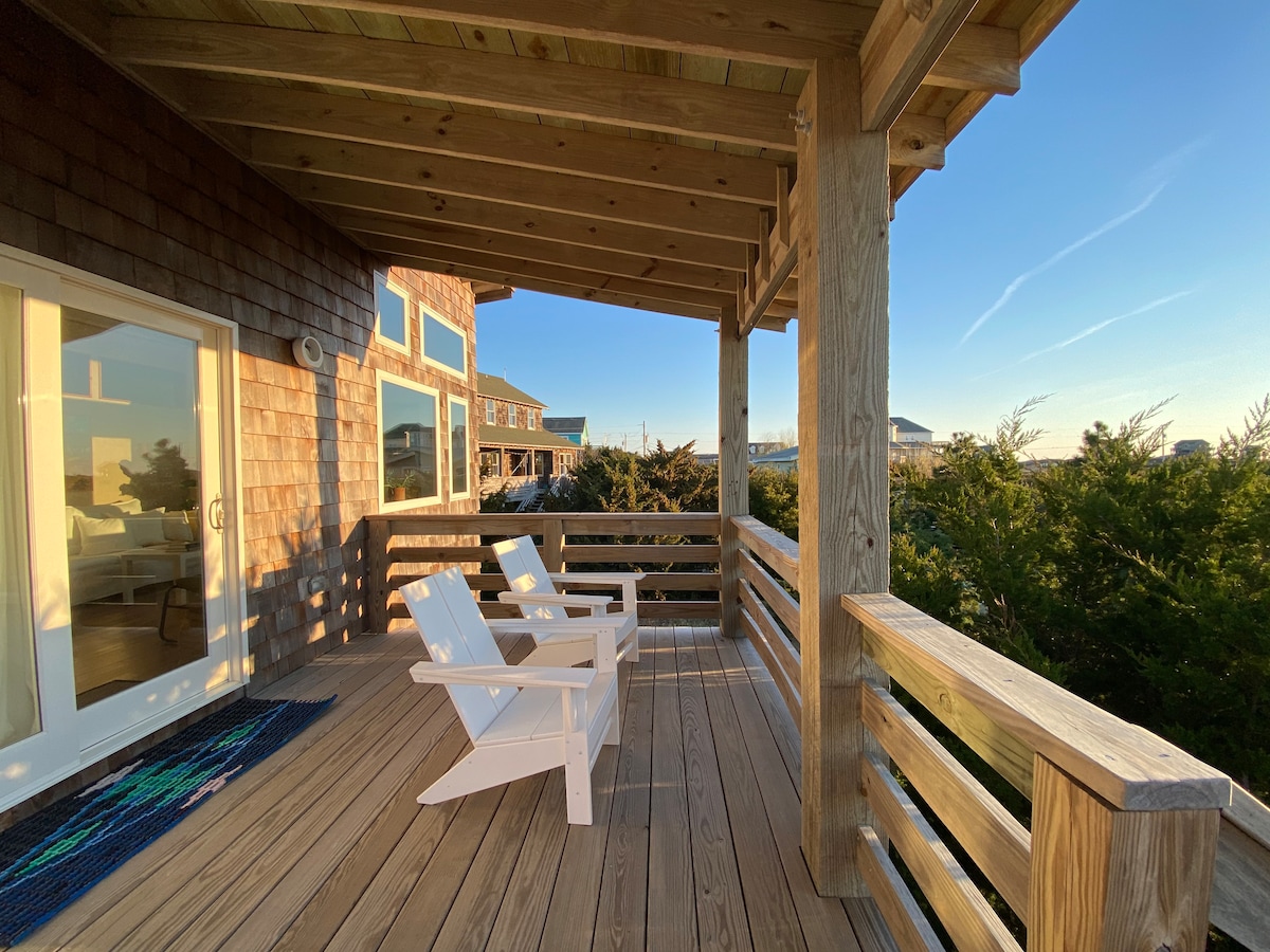 Tiny House living...Can you do it? Come try it out in this 240 sq ft tiny house at the beach! The custom tiny house is just steps from the ocean on a semi-oceanfront lot. Enjoy the multi level outdoor deck with lush landscape or hang out upstairs with floor to ceiling windows and a perfect view of the Rodanthe Pier. The interior exhibits wide plank pine floors, cypress ship lap & custom hickory stairs with mahogany inlay and live cedar accents. The kitchen has concrete counters and a farm sink.