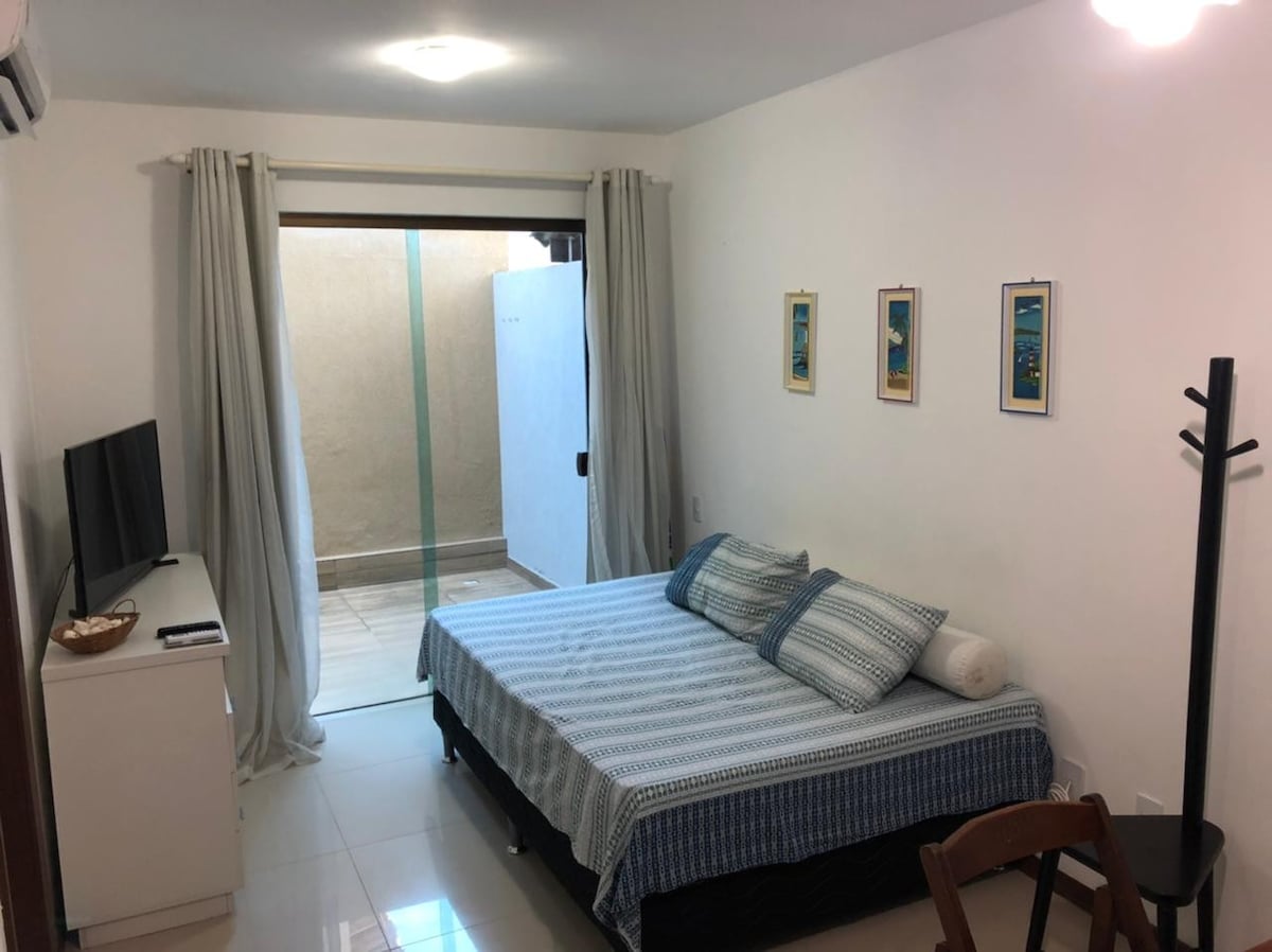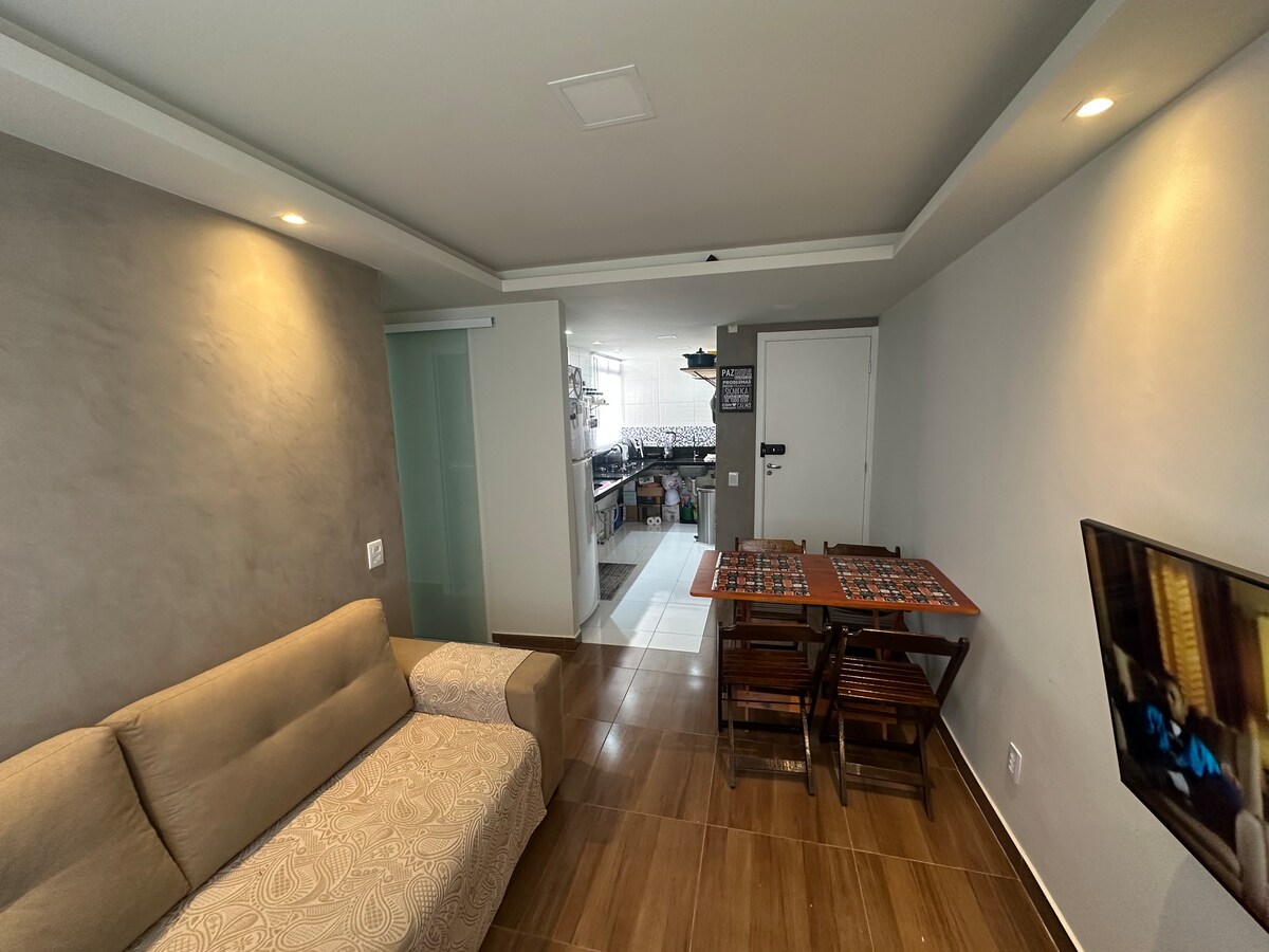 Ideal space for those coming to work in the industries of Camaçari, but who don't want to be far from the beaches, Lauro de Freitas and the airport. For those traveling with family, we can accommodate up to 4 people (double bed and sofa bed). Located a few steps from the Estrada do Coco with shops and transport "next door". Full kitchen, Wi-Fi, smart TV, air conditioning and electric shower. Parking (only small cars. Check availability for medium cars), balcony and service area.