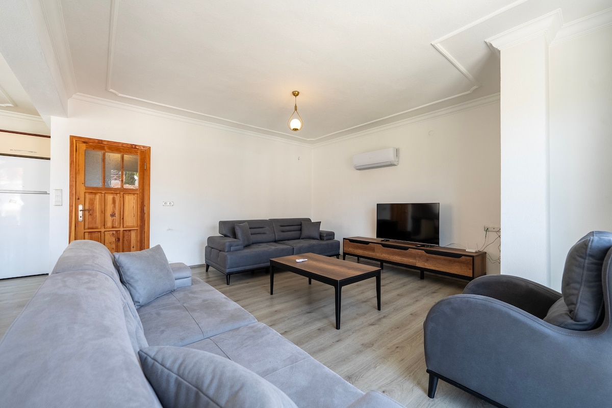 Quiet top-floor flat with a wide terrace overlooking the bay - the kind of view that makes you put your phone down. The space is simple, clean, and stocked with what you need for a short stay. The area is peaceful, but it’s just a 10-minute walk to town or a quick drive to the beaches. There’s also a scenic forest hike up to the abandoned village of Kayaköy. We live nearby and try to keep everything smooth, thoughtful, and low-key so you can enjoy your stay.
