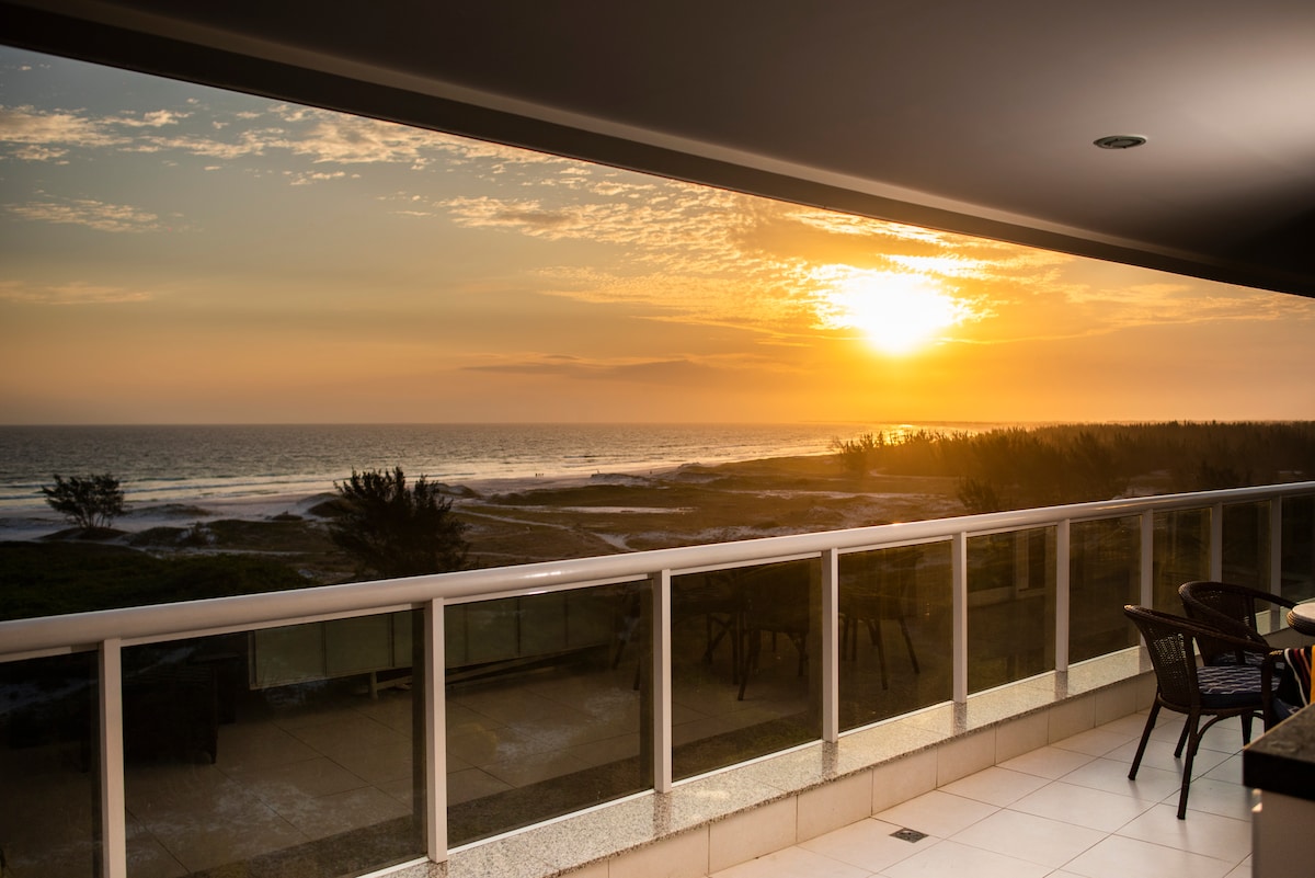Luxo de frente para praia com vaga e piscina
