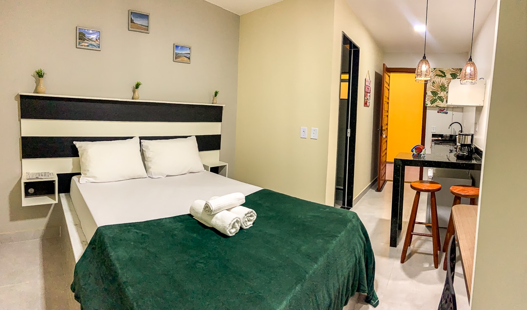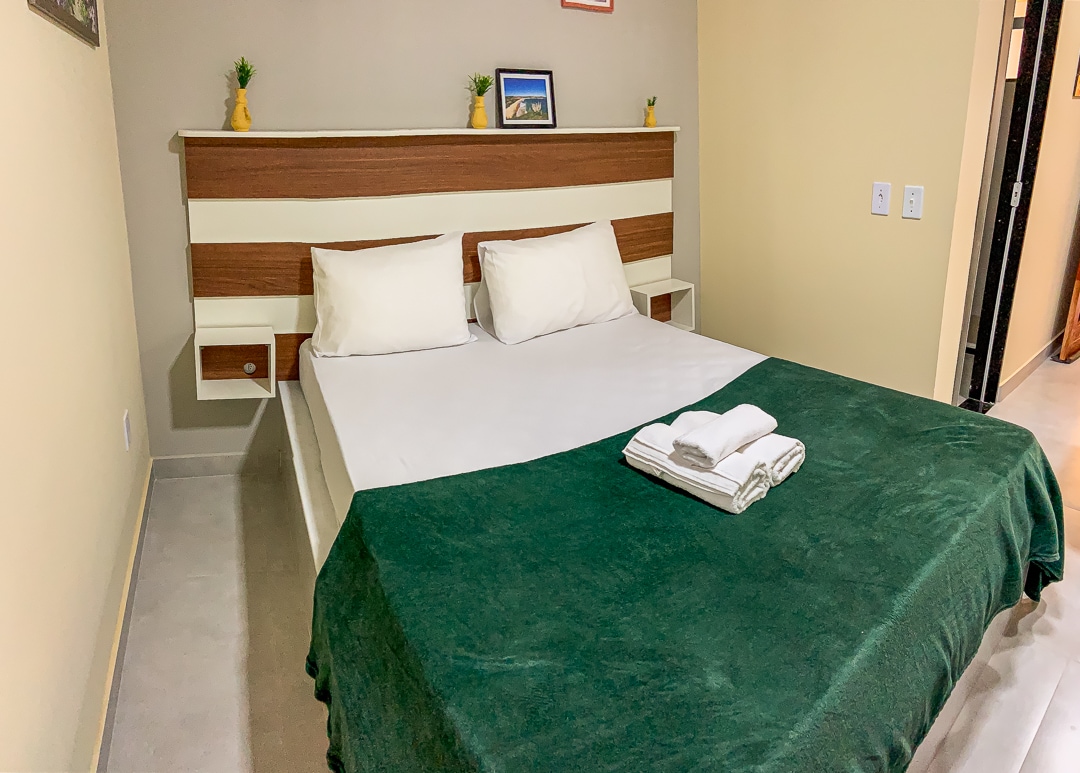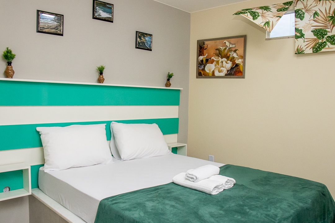 Suítes privativas para até 3 pessoas, inclui frigobar.