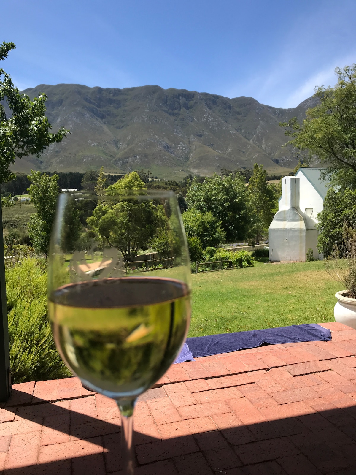 Hanepoot Cottage is close to Franschhoek village. You’ll love the cottage because of the spacious, private, setting on a working wine and fruit farm nestled against the mountains of Franschhoek Valley. Good for couples, solo adventurers, business travelers, and families (with kids). You are welcome to explore the farm and even practice your chipping and putting skills on the green.There is an inverter to provide electricity during loadshedding periods.