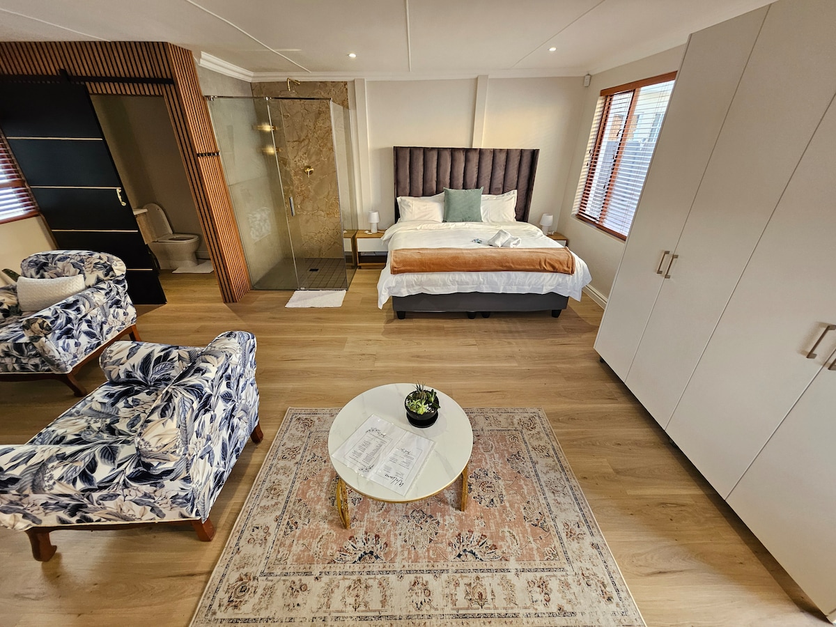 Welcome to The West End Studio. Just 300 meters from the beach, this studio is crafted with love—featuring a solar-heated pool (shared) for that extra touch of indulgence and personal coffee machine to greet your mornings with a smile. Although sharing the property and outdoors with the main house, this studio is separate and private. BEACH STUDIO DOES NOT HAVE A SEAVIEW PARTIES AND EVENTS ARE ALLOWED AT AN EXTRA COST OF R1,800. PLEASE, THIS MUST BE DISCUSSED DURING THE BOOKING PROCESS.