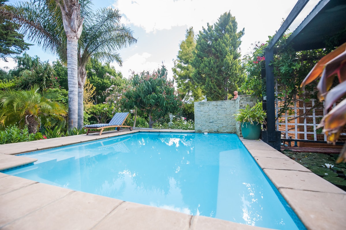 Kick back and relax in this calm, stylish space. The Pigeon Loft is a First Floor Apartment which we hope feels like a home away from home. Situated overlooking Vineyards which gently slope down to the Klipdrif River. The sunsets are spectacular on this side of town. What better way to wind down with a Sundowner on the Deck. Feel free to wander down to our Potager Garden, where we grow seasonal veggies and the chickens roam. Or sit by our Dam, which is a haven for all kinds of birds.