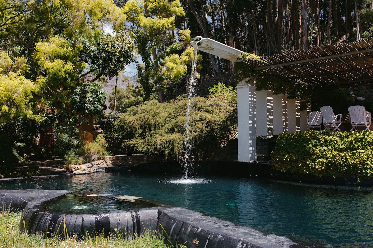Padel? Oh yes, we’ve got it! Fransvliet Estate is your ultimate Winelands escape, with stunning views, sparkling pool, lush gardens & the chance to play a match whenever you like. The Gardens Studio is designed for both work & leisure, featuring a work desk, monitor, fully equipped kitchen, and a fireplace. Plus, we’re fully solar-powered! And no need to worry—the padel court is far enough from the rooms to ensure your peace and quiet. Play hard, rest easy :-)
