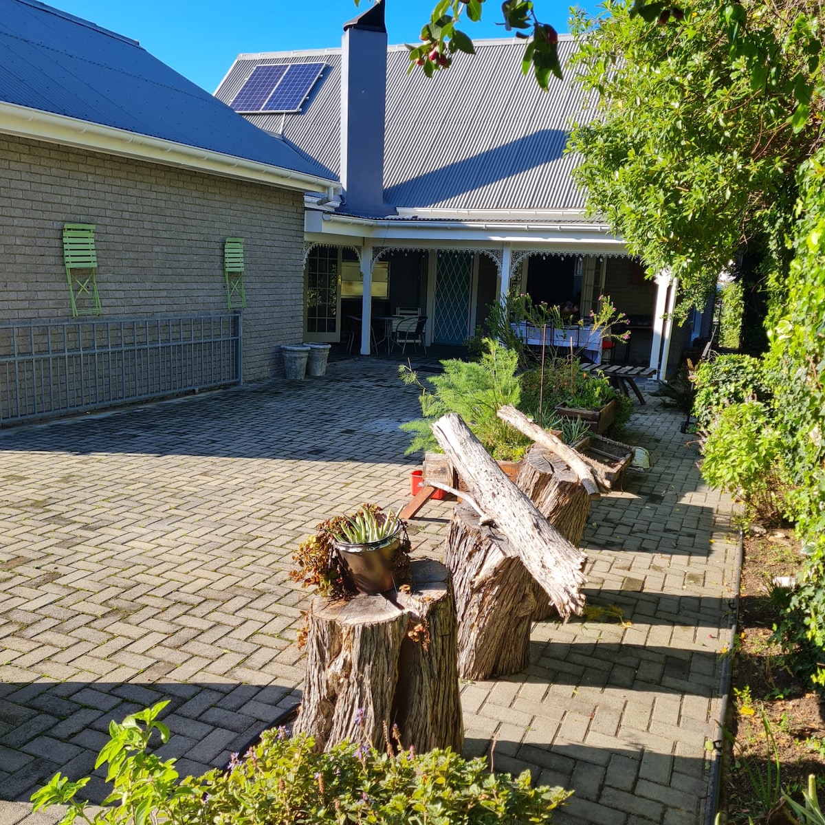 A family-friendly studio located next to the river in one of Swellendam's residential neighbourhoods. The studio boasts magnificent views of the garden and an enormous rubber tree, creating a tranquil experience. You’ll have high-speed wifi and solar power, perfect for remote working. Want a not-so-in-town feel? Then this is the place for you. The studio is located a mere 5 min walk to the nearest supermarket/midtown and a 13 min walk to old town with quaint restaurants, shops and cafés.