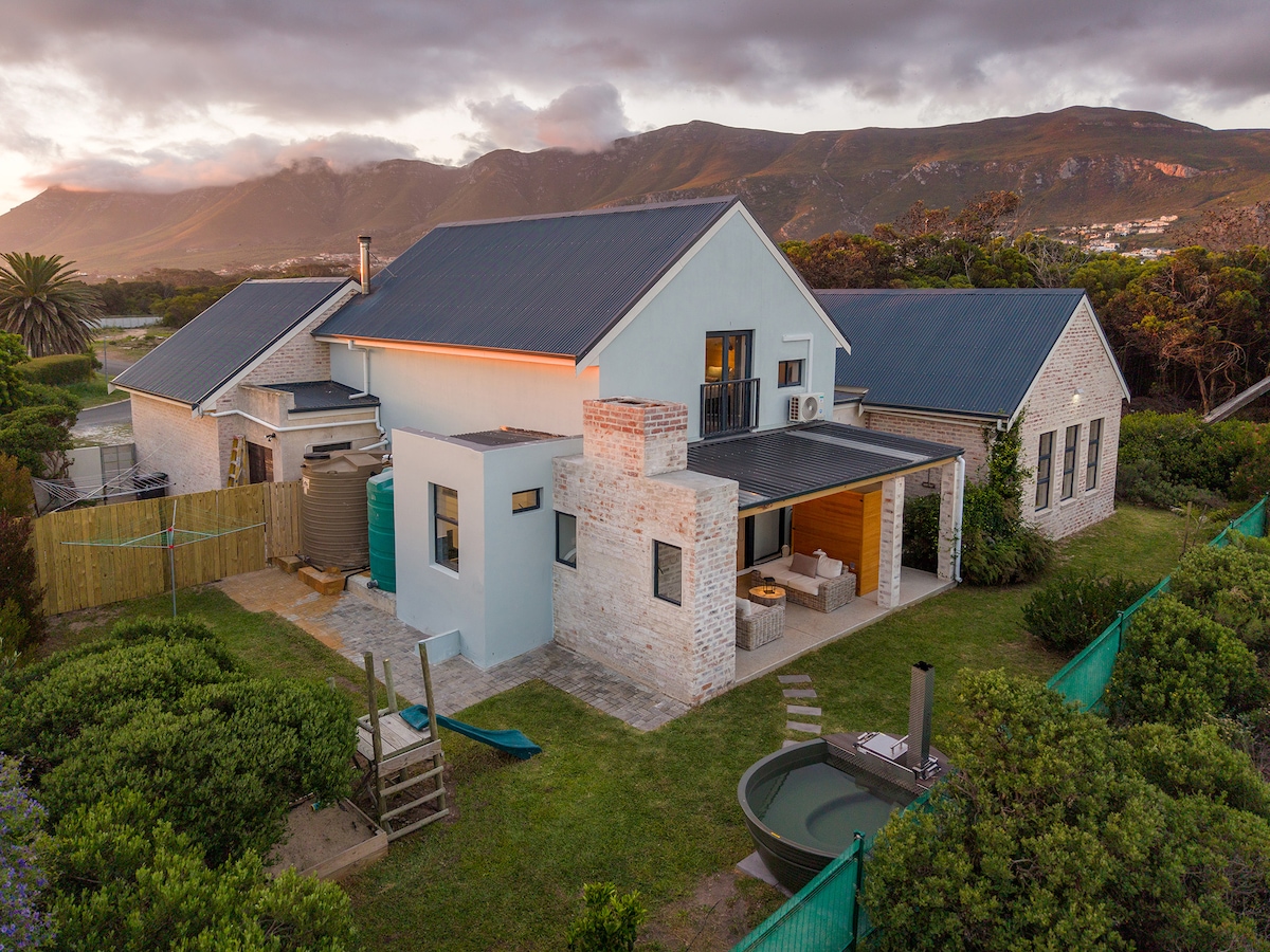 Off-the-grit Wifi, & full Dstv, we created the perfect stay for families, friends, business, and leisure travelers who want to explore the Whale route, Winelands, Cape Town, and of course Bikini Beach! Within walking distance from the beach, restaurants, and supermarkets. Also central to scenic coastal routes & markets. The deck has a lovely sea view and exquisite sunsets, while the beautiful private garden with a fire pit, hot tub, suana & amenities for children will make any holiday a breeze.