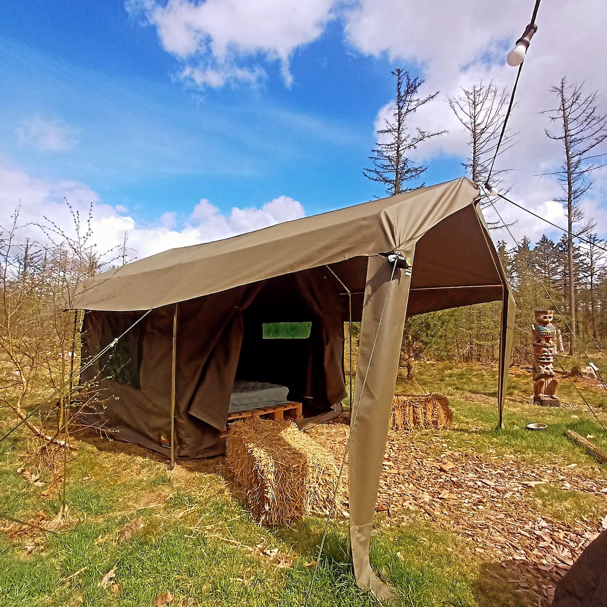 Een prachtige tweepersoonstent gelegen op 'Boerderij Buitengewoon' op landgoed Tongeren. De tent staat op een klein en rustig veldje aan de rand van het bos. Het veldje is onderdeel van 'Boerderij Buitegewoon'; een zorgboerderij met verschillende dieren. We vertellen er graag meer over! Het is een fijne plek om heerlijk te ontspannen en te ontsnappen aan de drukte van alledag. Bij de tent bevindt zich een heerlijke houtgestookte hottub!