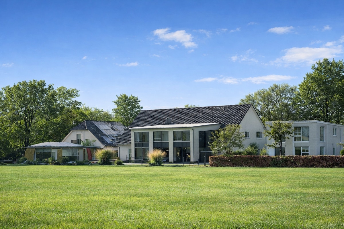 Relax and unwind in this spacious peaceful, stylish space, in the middle of the forest. Everyone is welcome at Villa Elodie. The house (130m2) is fully equipped and brand new. Go out in the area and relax. Enjoy the many villages, forests and beautiful estates, nice restaurants, bars and markets. Cycle or walk for hours in nature and then dream away at home in the house by the pond to the song of the many birds.