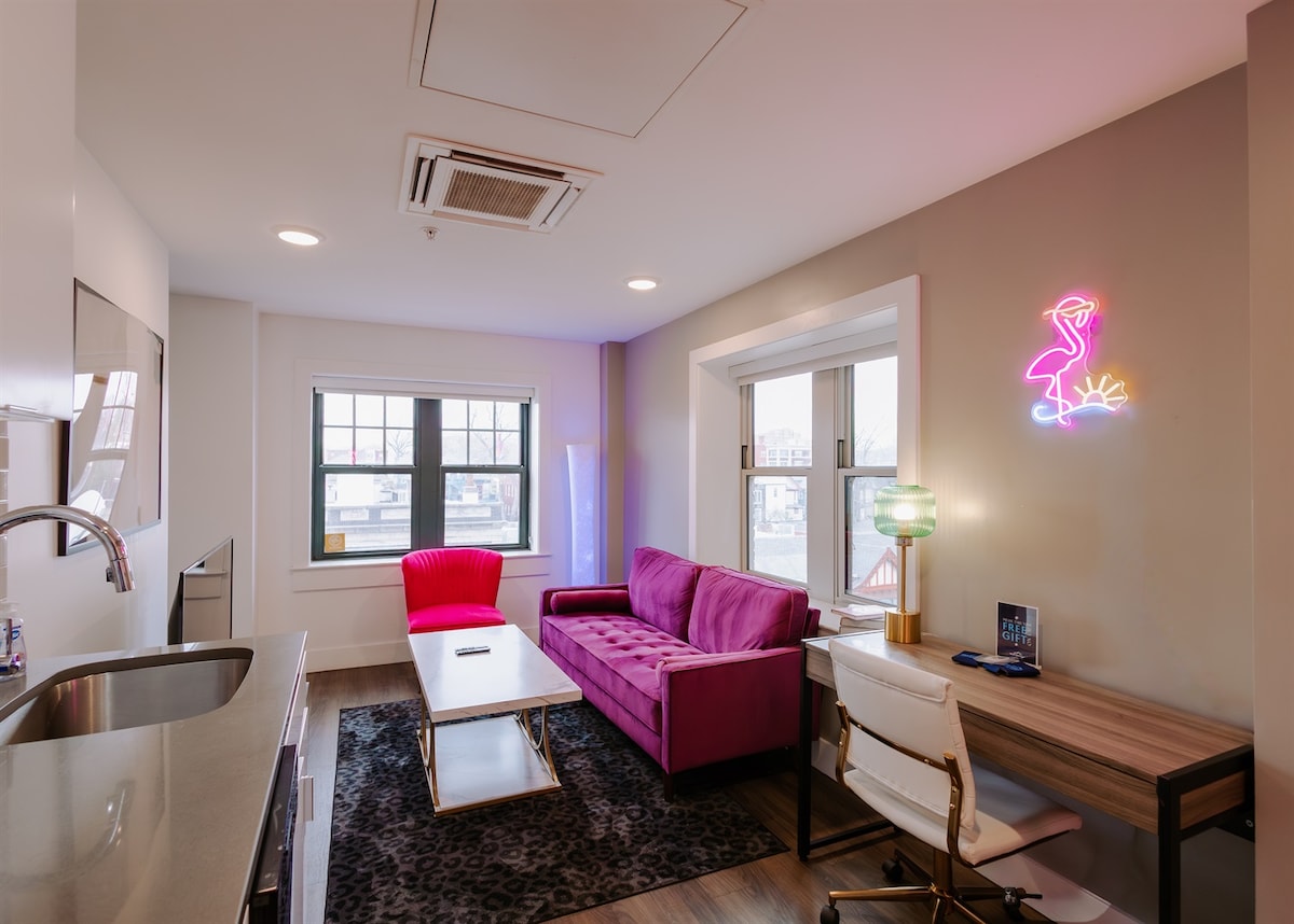 靠近著名广场+靠近DT 1卧室公寓,带厨房+工作区