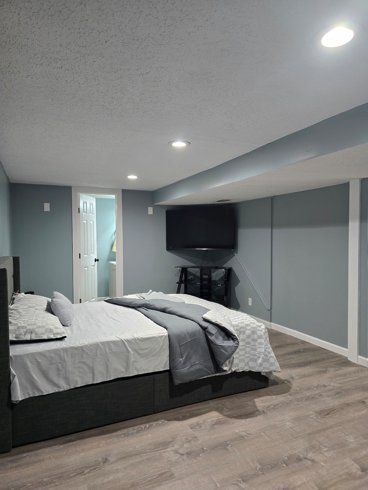This listing is for a basement apartment only in a single family residence home. (Upper level of home may have other guests.) This space is in lower level of home, completely separate from the upper level of home with it’s own private, secure entrance. Ethan Allen custom swivel chairs, 55 inch Panasonic Plasma TV, Eddie Bauer Home King-Size Bed with Luxury 15 " Pillow top mattress. Full size, equipped, kitchen w/ all the essentials.*Please review house rules prior to booking