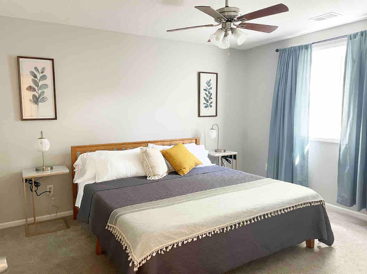 • This townhome has a Fully equipped + stocked kitchen • Beds: 2 Dreambed Lux and BeautyRest Black king, 2 memory foam queen • Extremely safe neighborhood • Onsite, secured parking for 2 vehicles ★"I loved the king bed downstairs. I haven't had good sleep like that in while!" • Onsite washer + dryer • Spectrum Wi-Fi • Smart TVs (cable tv and local channels not provided) 》15min to downtown Kansas City 》15min to the airport 》15min to Legoland 》15min to Sealife