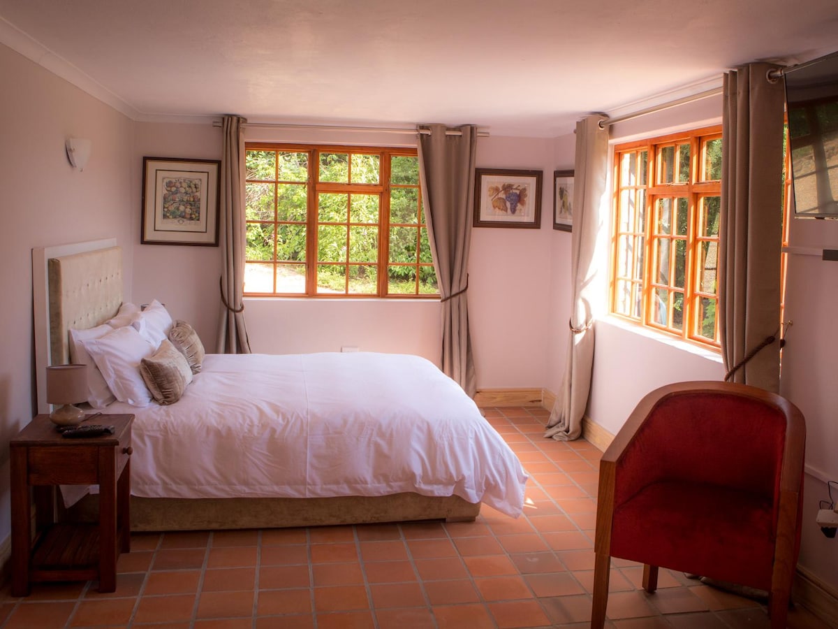 Sugarbush is a one bedroom en-suite self-catering unit. Beautifully finished, spacious shower, soft white towels and a dreamy, comfy queen size bed. Fully equipped kitchen, as well as outside braai facilities. There are also inside fireplace in all of the units.