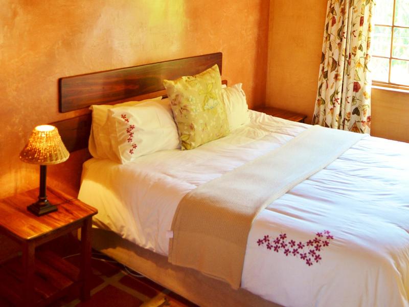 The cottage is separate to the manor house. It has airconditioning and a double bed (can convert in 3 single), en-suite bathroom with shower, an enclosed stoep with seating and a fireplace, and kitchenette with fridge, microwave and induction plate.