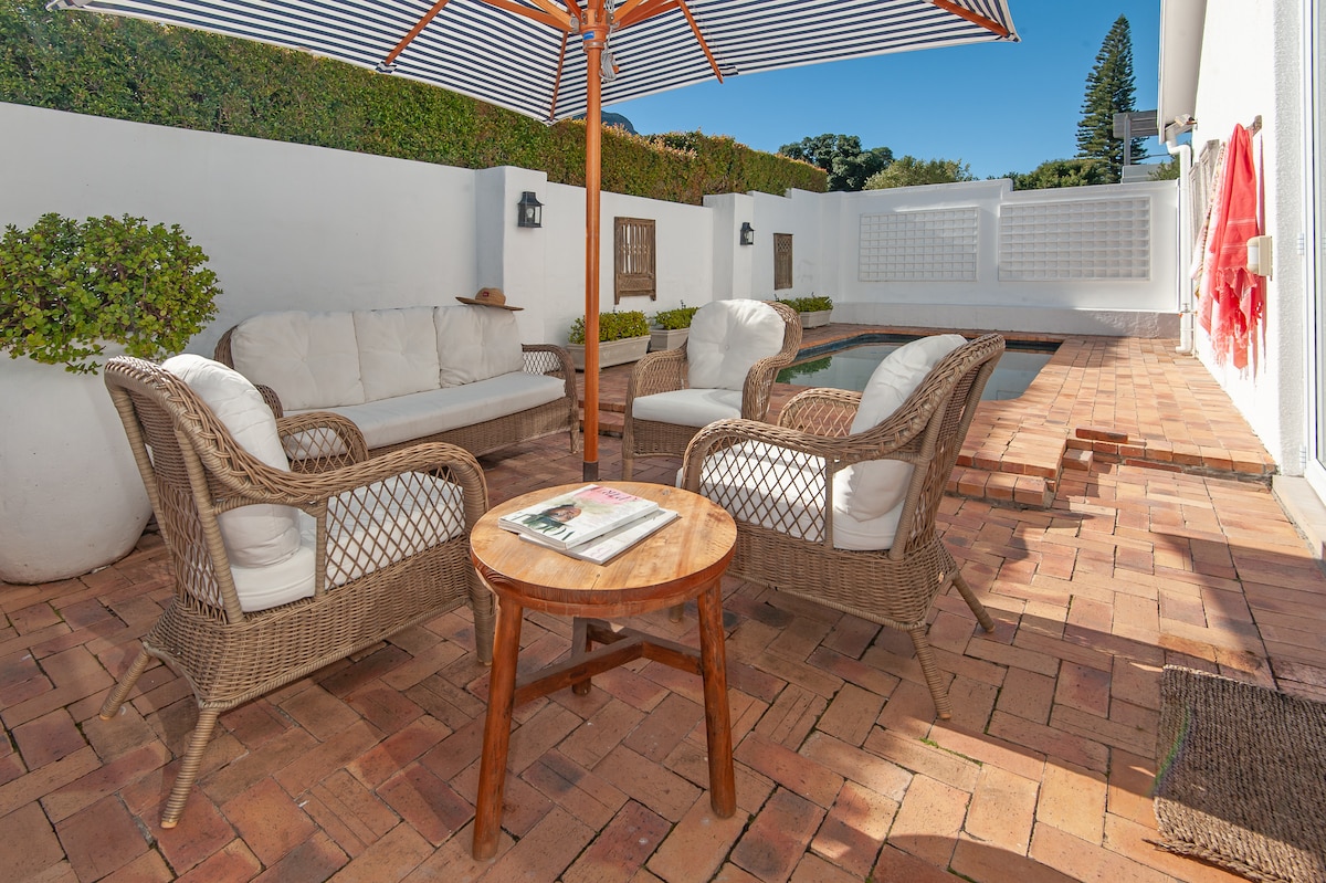 This stylish 5 bedroom, 5 en-suite bathroom beach bungalow provides the ideal setting for a relaxed vacation at the majestic Hermanus coast. While away the hours pool-side, or enjoy the mountain glow at sun-set around the fire-pit with loved ones. Just a short walk to the beach, The Bungalow is what holiday dreams are made of. Enjoy the fire-place & local wine-farms in the winter, or enjoy the outdoor chill areas in the summer-time. Hello poolside barbecues! Solar-powered ☀️