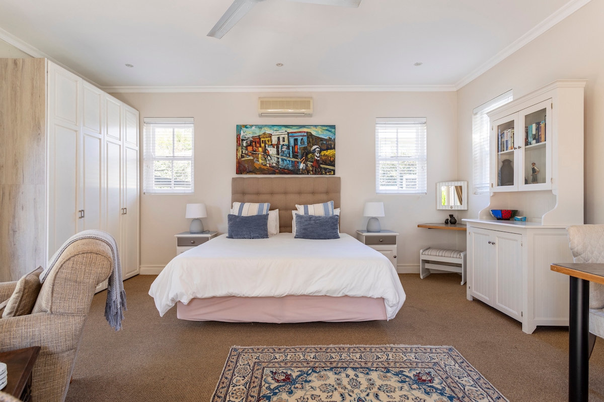 A secluded and private garden cottage with seperate entrance, 1.5 km from the town center. The Hermanus cliff path and harbour only minutes walk from your front door. Explore by foot, by car or just relax in your peaceful garden. Make the most of your stay with our South African braai facility. The hospital and clinics are just a few blocks away. Includes smart TV, DSTV Premium & internet.