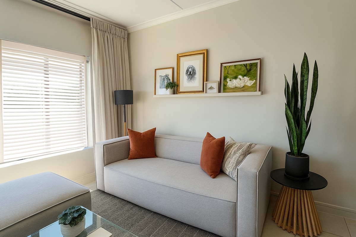 Tuis & Tevrede is a cozy two-bedroom flat for up to four guests, perfect for families with young kids. The jungle gym keeps little ones happy while parents relax. Located in a quiet, safe area just 200 m from the cliff path, near Fernkloof Nature Reserve & the golf course. Guests can also enjoy no load-shedding & fast Wi-Fi. Outdoor enthusiasts will receive our curated list of local mini-adventures, shared after booking. Pet-friendly by approval only.