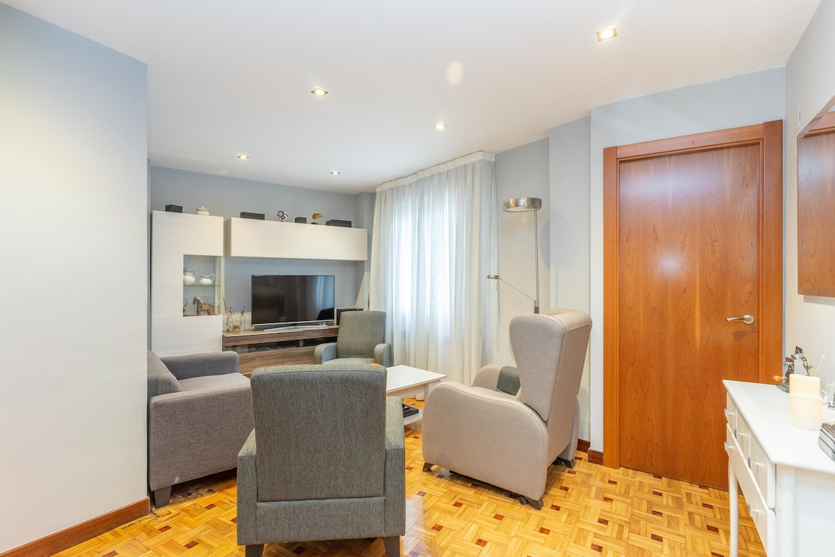 Super central apartment, two minutes from the bus station and five from the Ave train station. It's very bright and functional. Being centrally located near Salesas, El Corte Inglés, and Mercadona, you can walk all over the city and experience firsthand the atmosphere and all the beauty of Oviedo. The living room has a very comfortable sofa bed for one adult, with a €25 supplement for use as a bed. I want to offer you a charming, practical, and comfortable space. With Wi-Fi.