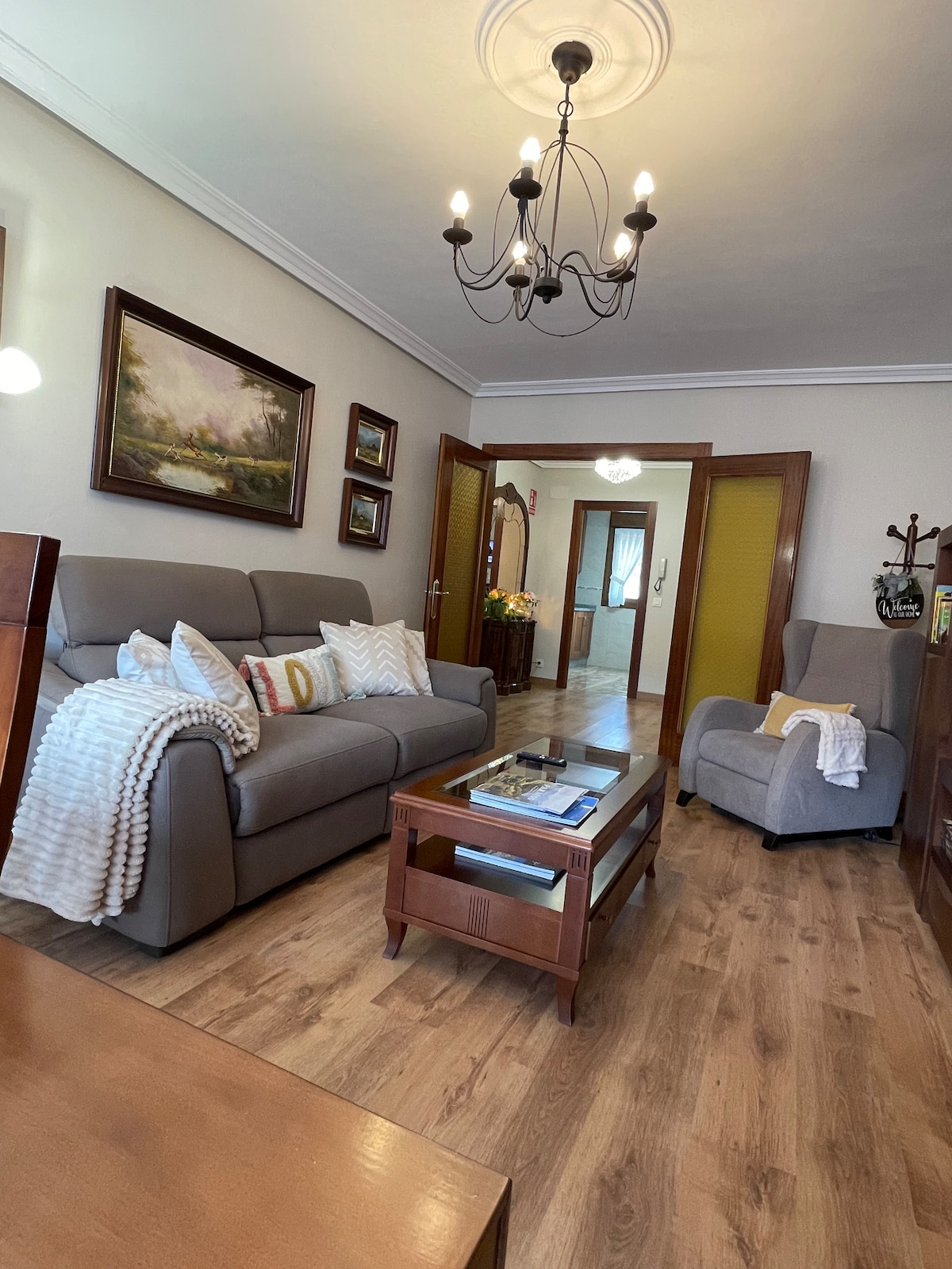 Tiene GARAJE.Mi apartamento es sencillo, pero al mismo tiempo acogedor. Tiene un ventanal en el salón que me encanta, sobre todo en días con niebla o cuando la luz de la luna llena entra en el. Las camas son de madera ecológica, nos encanta la naturaleza, por eso tenemos diversas plantitas en nuestro hogar. Tiene dos habitaciones muy bonitas. La cocina, el baño y el salón. Es un quinto con ascensor. Les encantará. Decir que por cortesía se incluye un pequeño desayuno continental