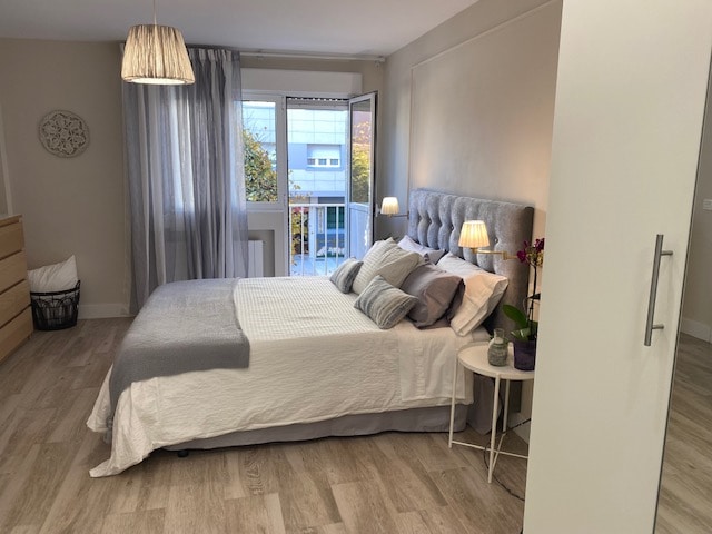 Tiene GARAJE.Mi apartamento es sencillo, pero al mismo tiempo acogedor. Tiene un ventanal en el salón que me encanta, sobre todo en días con niebla o cuando la luz de la luna llena entra en el. Las camas son de madera ecológica, nos encanta la naturaleza, por eso tenemos diversas plantitas en nuestro hogar. Tiene dos habitaciones muy bonitas. La cocina, el baño y el salón. Es un quinto con ascensor. Les encantará. Decir que por cortesía se incluye un pequeño desayuno continental