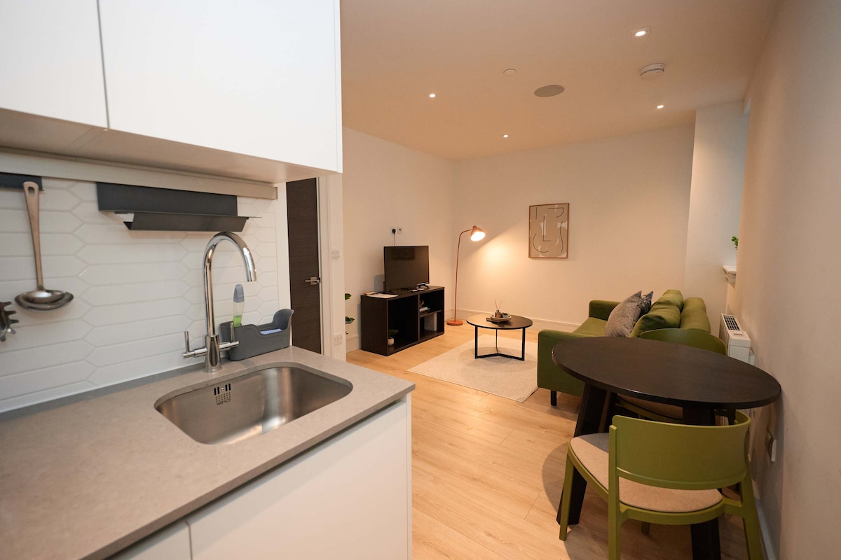 Unwind with a book in a Tranquil Oasis. Immerse yourself in Spitalfields' rich history from this serene 37sqm 1-bedroom haven. Relax in a Brazilian hammock beneath a full-height fiddle-leaf fig tree, the perfect spot to unwind as the city bustles beyond. Enjoy a laser cinema projector with a 100-inch screen and immersive sound to stream your favorite shows and movies. Powered by 100% renewable energy, this apartment blends comfort, entertainment, and sustainability in the heart of the city.