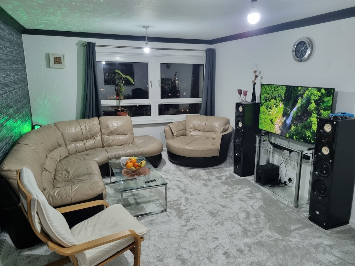 Welcome to our cozy and spacious apartment nestled in the heart of Dumbarton, Scotland, just a stone's throw away from the breathtaking beauty of Loch Lomond(10 min by car ) and a convenient distance from the vibrant city of Glasgow(30 min by car ) .With its high ceilings and picturesque city views, guests can enjoy a sense of spaciousness and tranquility during their stay