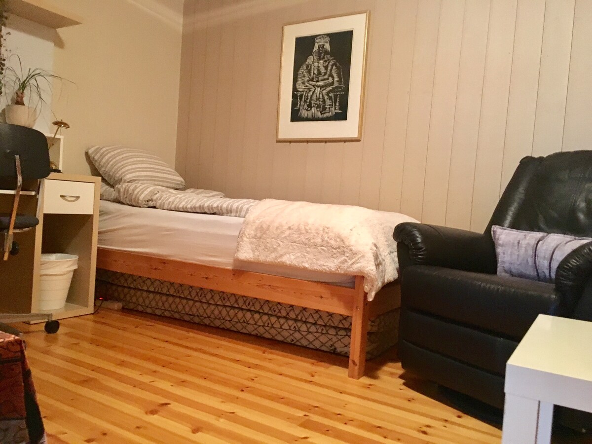 Jeg leier ut hjemmet mitt. Dette er en nyere leilighet i 1. etasje med god standard. Den har skjermet og fin beliggenhet med gode solforhold på terrassen. Det er kort vei til sentrum. Det er også kort avstand til buss, tog og matbutikk. Marka og fine turstier er i umiddelbar nærhet for den friluftsinteresserte. Siden det er hjemmet mitt jeg leier ut, vil det være noen få gjenstander jeg ikke klarer å fjerne, men ellers vil leiligheten være ryddig og ren til du kommer. Leies ut til ikke-røykere.