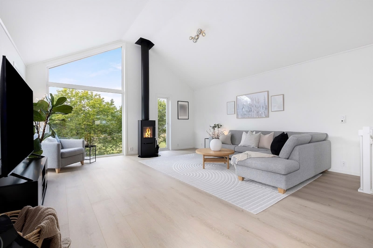 Slapp av sammen med hele familien på dette fredelige bostedet. Moderne tomannsbolig bygget i 2018 med høy standard, fin skjermet hage, flere terasser og solrik beliggenhet. Det er flotte friluftsområder for gåturer, fiske, ski, padling, bading og sykling rett ved. Landelig beliggenhet med 500 meter til bussholdeplass og ca 5 km til tog. Gratis parkering med lademulighet for el-bil mot betaling. Når jeg ikke leier ut boligen, så bor jeg der. Noen rom og skap vil derfor ikke være tilgjengelig.