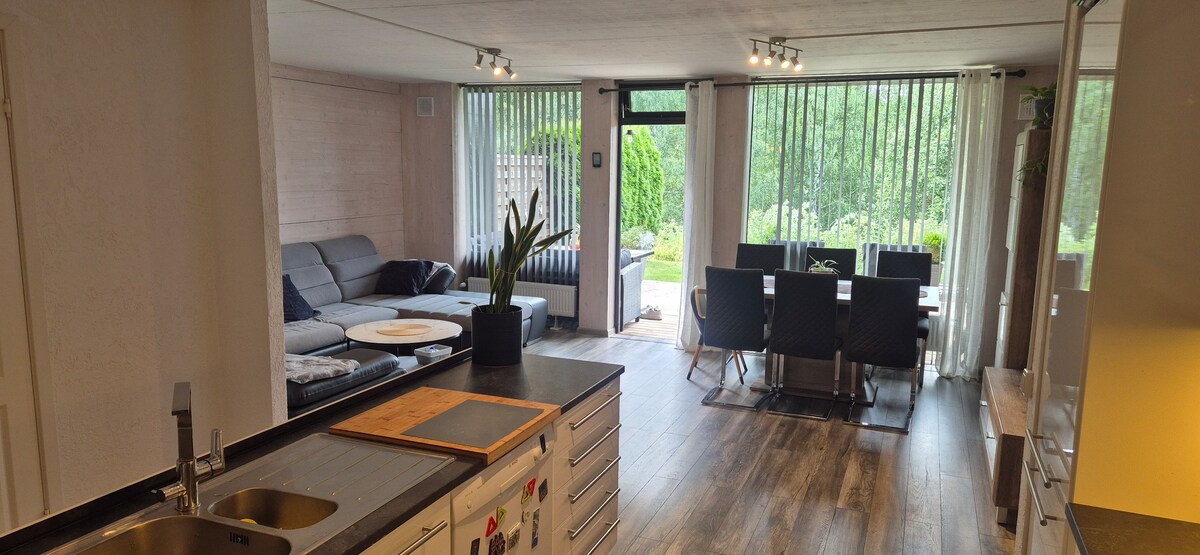 Discover this spacious and cozy home at Hokksund, perfect for families, travelers or remote workers. Located in a peaceful neighborhood with beautiful nature right outside your door, it’s ideal for outdoor activities, family outings or just relaxing. Enjoy free parking and easy access to local amenities, grocery stores, and public transport. The modern kitchen and the living spaces create a welcoming home.
