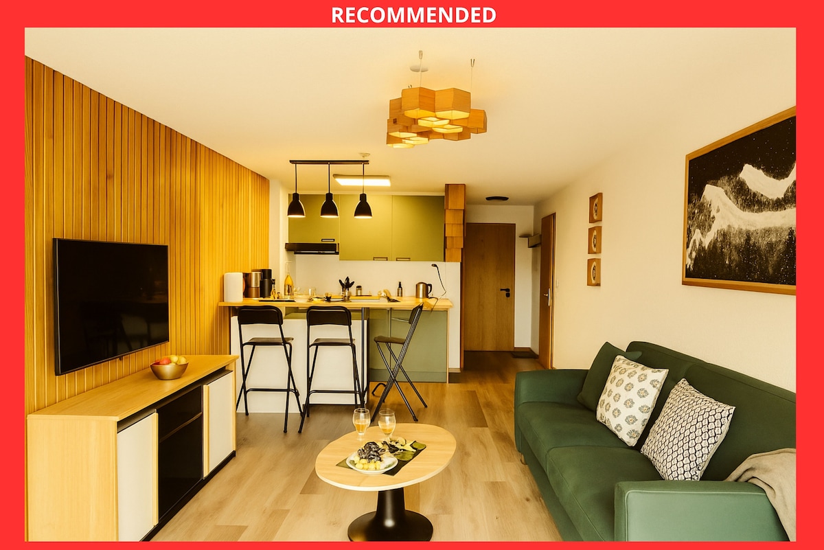 Pour week-end, une ou plusieurs semaines, c’est avec plaisir que nous vous ouvrons la porte de notre petit cocon douillet. Chambre avec un lit 180cm, salon moderne et confortable avec canapé lit douche à l'Italienne, cuisine entièrement équipée, grand balcon. Idéalement situé au 3ème étage dans un immeuble neuf avec garage Bus-navette gratuit pour les pistes devant l’immeuble. Bain à 5 min à pied ⚠️ RTE DES BAINS 148 non 124