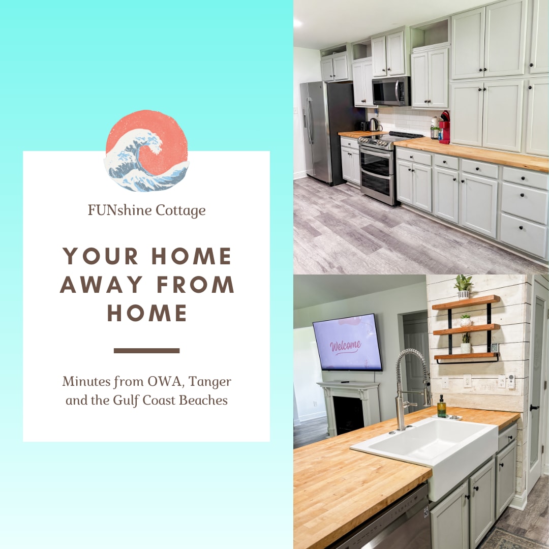 Very Clean and much more roomy than pictures can justify. Just two minutes from OWA's Tropical Falls Water Park , 12 min to Sports Complex, 20 min to Gulf Shores. Enjoy the whole house with a Queen bed, full bed, 1 full size Bunk bed top and bottom, 1 twin bunk bed, pack n play for the baby. 2 nice bathrooms Tv in two bedrooms Foley offers any restaurant you can imagine, shopping outlet, bowling. The house is centrally located to all and is a no smoking no pet home Grill and Firepit