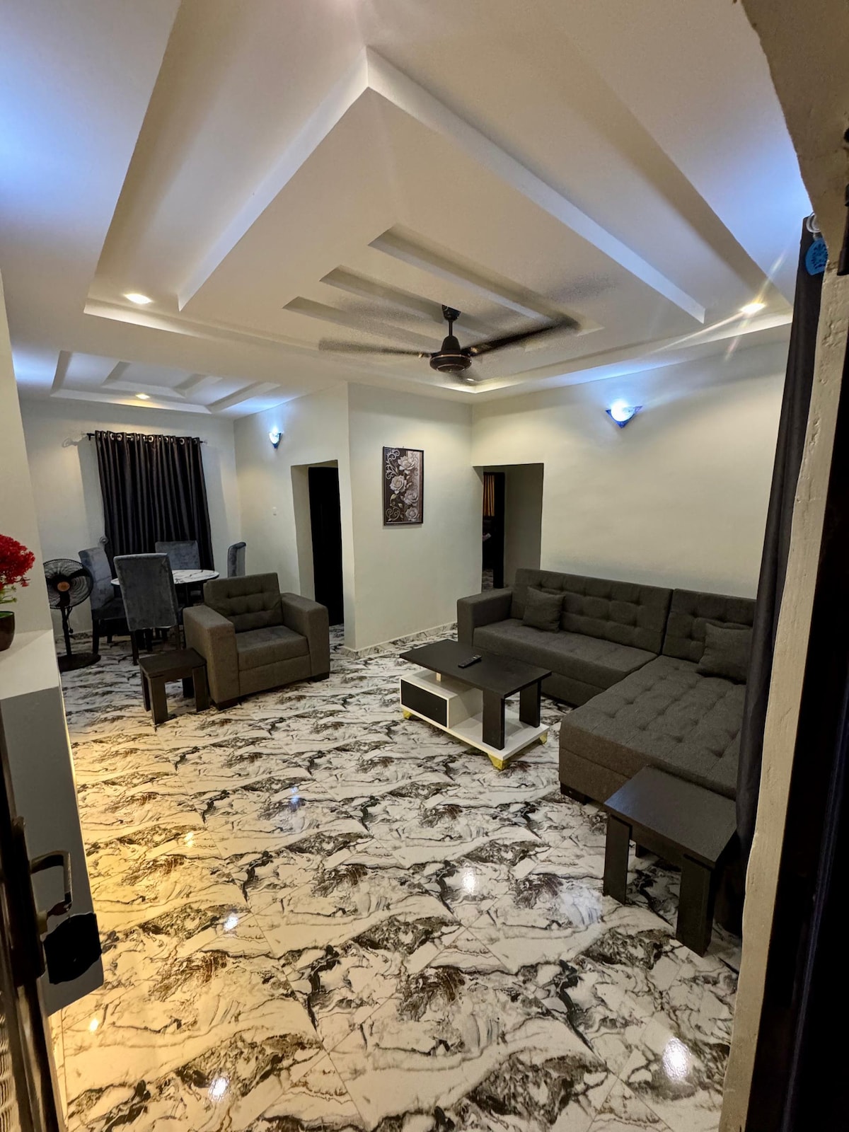 Welcome to your cozy and peaceful getaway! This stylish apartment offers a calm and cool environment designed for relaxation and comfort. Whether you're visiting for work, a short stay, or a weekend escape, this space provides everything you need to feel at home. Our facilities include 24-hour power supply, high-speed Wi-Fi for guests, and CCTV surveillance for enhanced security. The environment is peaceful and designed to provide maximum comfort during your stay.
