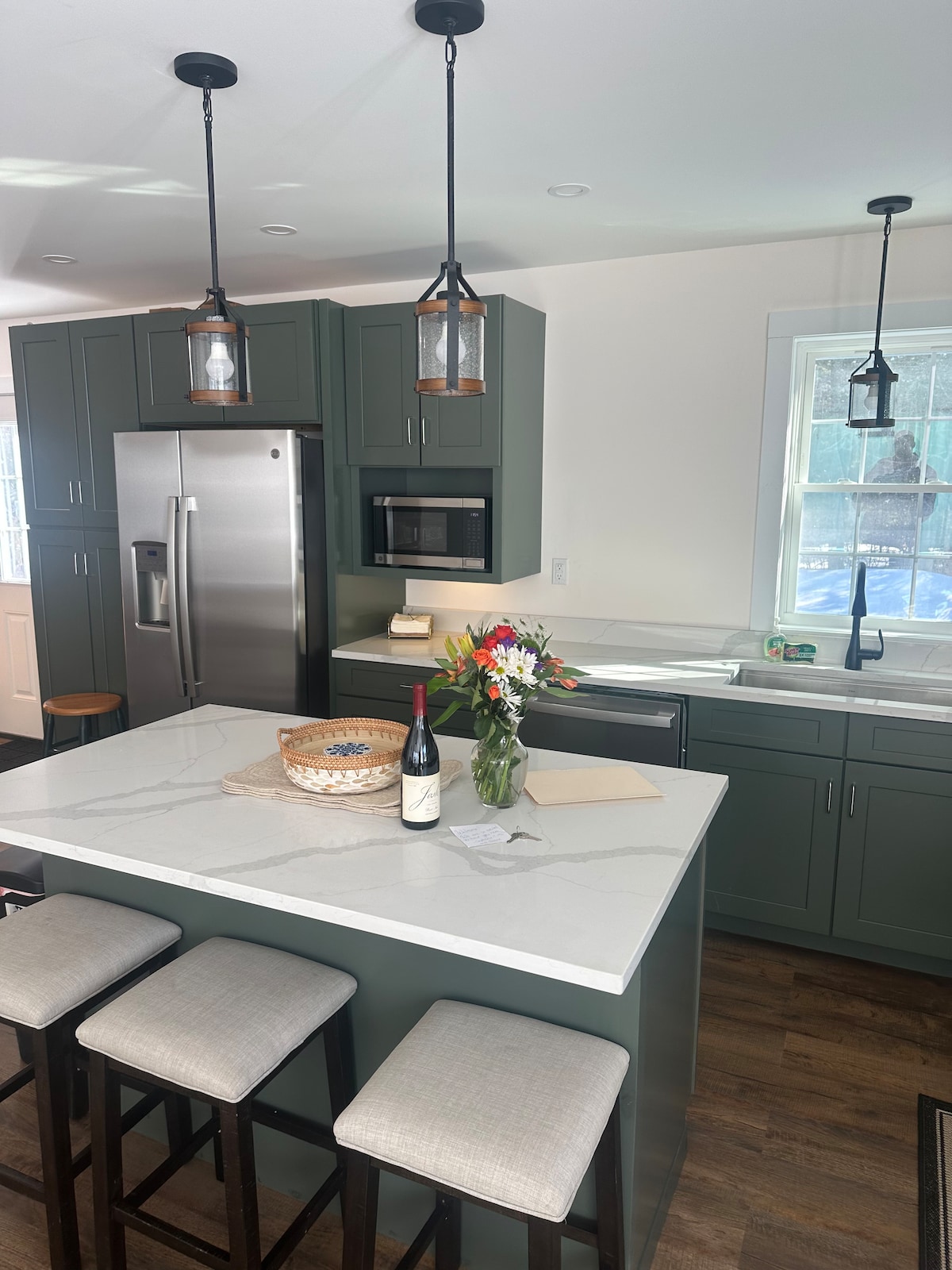 We love it every time we are able to get up north to our classic Adirondack home-away-from-home. If we didn't have to work about two hours to the south, we'd live full time at the cottage. From the spacious kitchen, to the 3 comfy queen beds and the bunk room, to the wonderful fireplace, to the cozy separate sitting areas, to the living room with cathedral ceiling, to the huge front porch, to the fire pit in the back yard...we long to make the trek back up to Whiteface/Wilmington.
