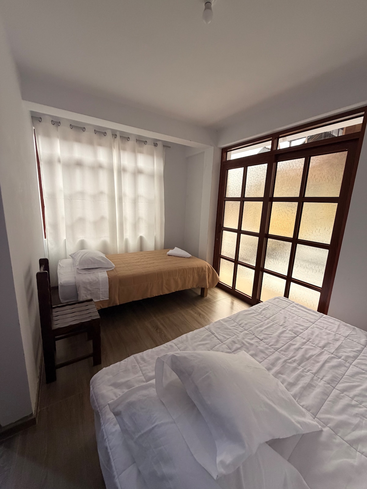 ✨Habitación cómoda y equipada: 4 camas de 1 plaza y 1 camarote de plaza y media, baño privado, TV cable, Wi-Fi y artículos de aseo. ✨Súper céntrico, a una cuadra del terminal ️. ✨ Tours con recojo y retorno al hospedaje y descuentos exclusivos.