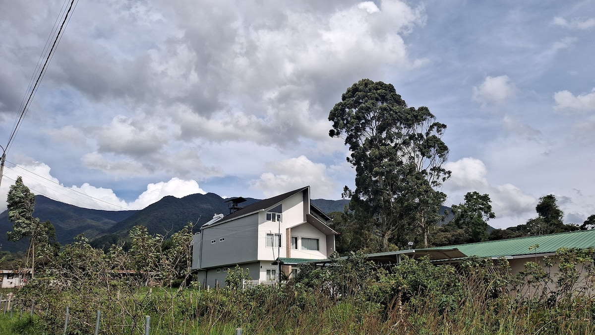 Disfruta de una experiencia con estilo en este alojamiento céntrico y a la vez en el bosque conectando con la paz de la naturaleza y a minutos de la plaza central. Vas ahorrar tiempo y combustible. • Baño con agua caliente • 2 habitaciones con 3 camas • 2 camas de 2 plazas y 1 cama de plaza y media • Terraza con vista al bosque y parrilla • wifi • Sala comedor • cocina equipada • 2 televisores también vas apreciar la variar de aves, ardillas y monitos que nos visitan de la naturaleza.