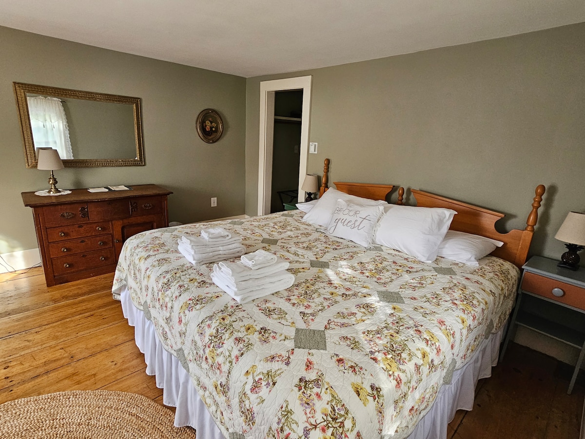 Charming, farmhouse style, king size room in a classic New England Inn. Built in the 1820s, the inn has historic, classic touches, and modern amenities. Enjoy breakfast, Lunch or Dinner at Lindsay's Restaurant downstairs, or grab a cocktail on the porch. Cornish is situated halfway between Portland and North Conway, and close to summer camps and lakes in the Sebago Lake region. A perfect stopover or opportunity for a longer unwind.
