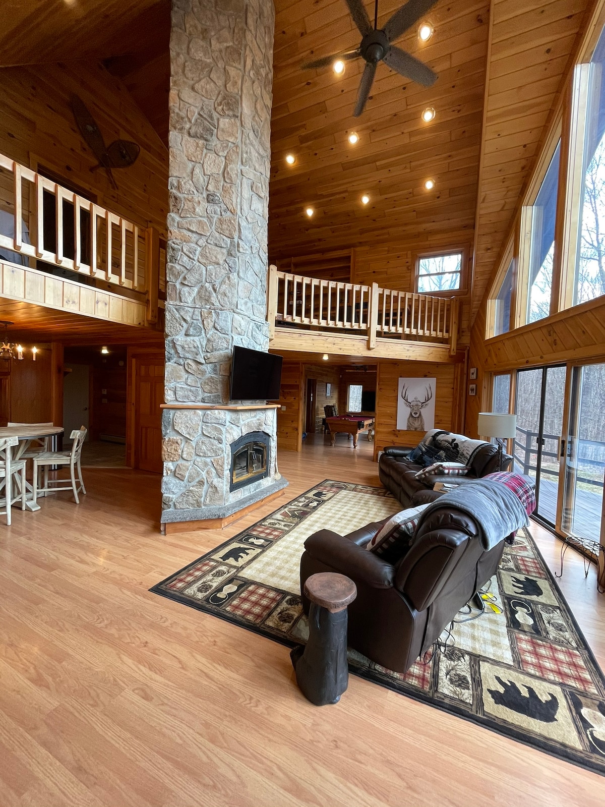 ✔ Modern 4-Bedroom, 4-Bath Cabin – Sleeps 12 ✔ Relax in a 7-Person Hot Tub Under Cozy String Lights ✔ Game Room with Bar, Air Hockey, Shuffleboard, & SMART TV ✔ 15 Min to Sunday River & Mt Abram, 10 Min to Downtown ✔ Patio with Fire Pit, Adirondack Chairs, Dining Areas, and BBQ Grill ✔ Spacious Deck with Stunning Views of Sunday River & Mahoosuc Mountains ✔ Cozy Gas Fireplace, A/C, and Fast Fiber WiFi ✔ Dog-Friendly (w/ fee) ✔ High Chair, Pack N' Play, & All Linens/Towels Provided
