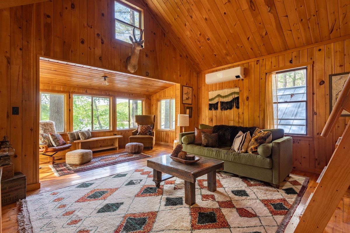 Welcome to the Mad Moose Lodge! Year-round adventures begin at this 2-bed, 2.5-bath Stoneham chalet. This vacation rental provides incredible fall foliage views and easy access to mountains and lakes! Close by to cross-country skiing and snowshoeing in the winter and hiking, mountain biking, boating and swimming in the summer there are endless options of outdoor enjoyment. Enjoy stunning sunsets over the mountains from the comfort of the couch, or while enjoying a game of pool in the game room!