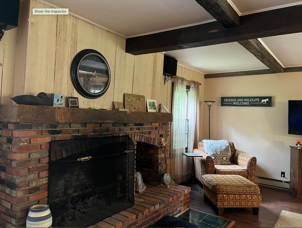 Discover our cozy in-law suite in Casco, Maine. Sleeps 4 with a queen bed and pullout couch. Enjoy a private bathroom with heated floors, free coffee, snacks, and toiletries included. Outside, a firepit, grill area, and private covered parking await. Your perfect Maine getaway!