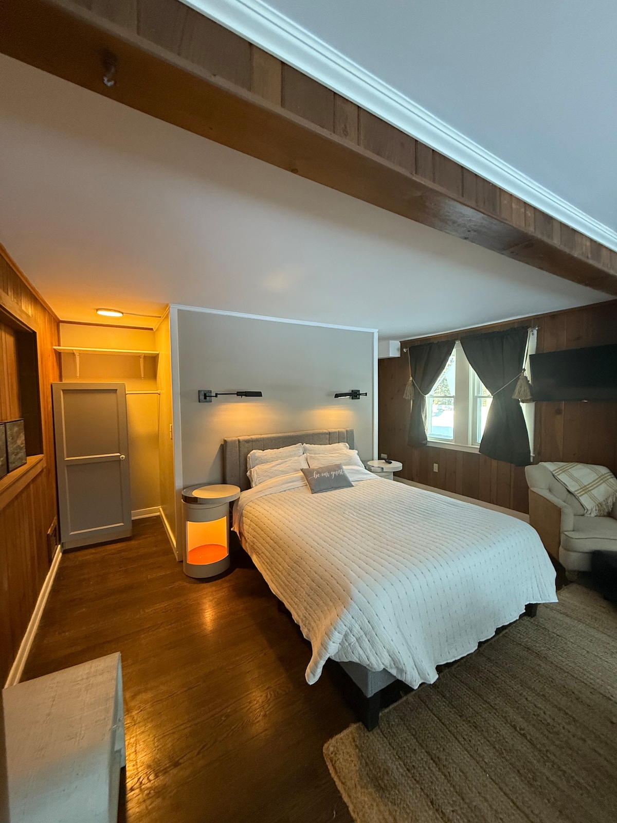 Come stay in our renovated school house! This guest suite has great history. It has a spacious room with private entrance and private bathroom. Original wood floors, ornate copper ceilings, private driveway and private deck. Minutes from great hiking, waterfalls, lakes and ponds, and gorgeous scenic views. I have a 5 star cleanliness rating and can ensure that every surface is thoroughly sanitized between guests.