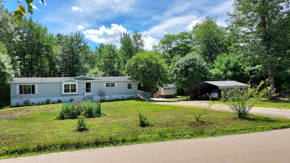 Reconnect with nature at this roadside escape near Bethel, Maine/Sunday River Resort/White Mountains National Forest. Endless outdoor adventure awaits only minutes away. Clean and cozy with immediate access to US route 2. Freight train comes by 2-3x per week max, you might hear it blow it's whistle! Sound of the road is unavoidable, luckily traffic here is not consistent or intense. The queen bed is quite comfortable and the kitchen table converts to a small double bed as well.