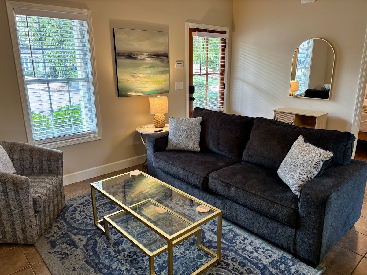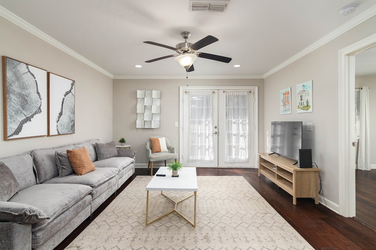 Brand new guest suite completed March 2025 in the heart of the Oxford historic district. Calming, peaceful, Spanish revival vibe. A half mile walk to the Square and 1 mile walk to Ole Miss campus and athletic events. Guest suite is attached to the main house (separated by an interior breezeway), separate exit and entrance is down a walkway on the left side of the home with keypad entry/exit. Stackable washer and dryer as well as microwave, drink fridge, and Nespresso coffee maker.