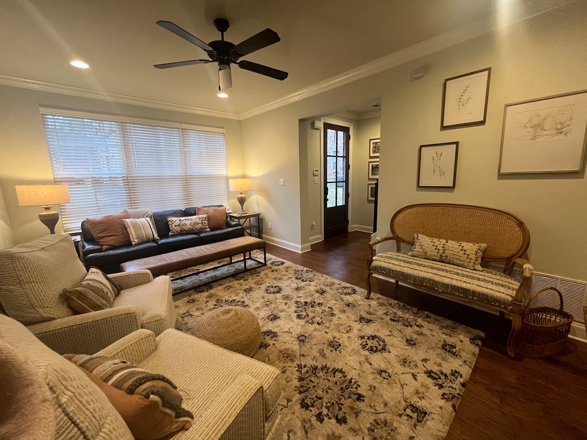 Our 3/3.5 condo is in a gorgeous complex with ample parking directly in front of the unit, high-speed internet, stainless steel appliances, full kitchen, and full sized washer/dryer. Each bedroom has an en suite full bathroom. Enjoy visiting upstairs in the sitting area that is well stocked with board/card games as well as a sleeper sofa. Our condo is super convenient to enjoying Oxford or simply relaxing! For the security of our property, there is a ring camera at the front/back door.
