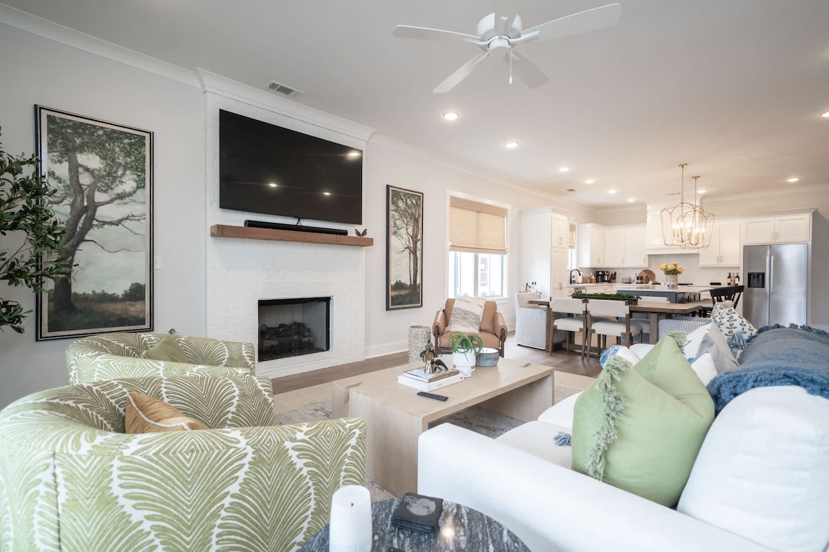 Oxford’s Finest at South Grove is a newly built 4BR/4BA home just 2.5–3 miles from Ole Miss & The Square. Features 3 king bedrooms + 1 twin room, stainless steel appliances, gas fireplace, full dining space, and a covered outdoor patio with bed swing, Blackstone grill, and TV. Two-car garage + driveway parking. Ideal for families, couples, and elevated Oxford stays.