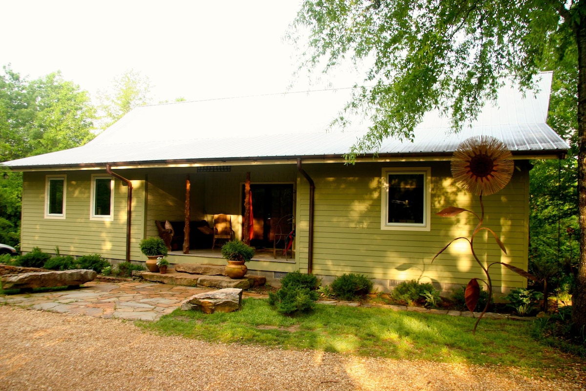 This basement apartment is below Oxford Treehouse Gallery in beautiful Lafayette County. It is nestled in the trees down a private drive only 6.5 miles from the Oxford Square. It has a private entrance with an outside covered seating area and access to the screened porch off the gallery.