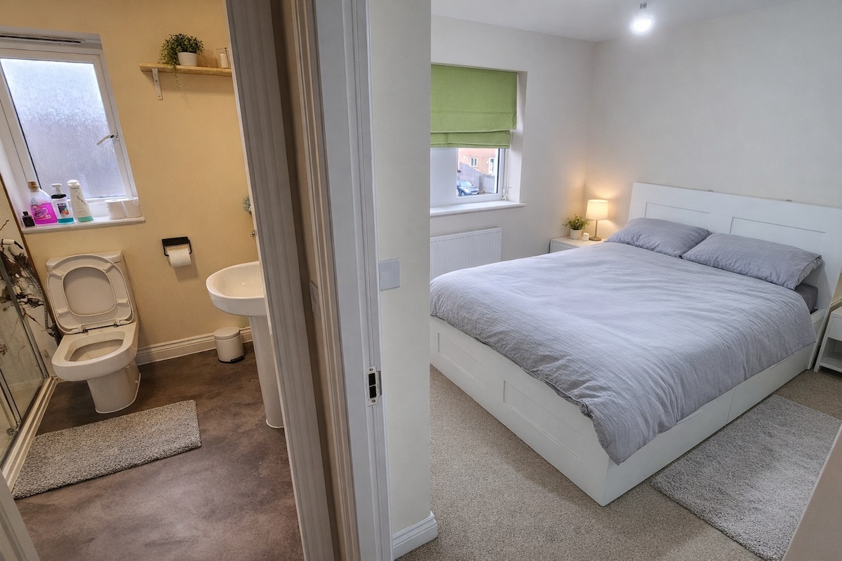 Private access, front door leads into living area and patio doors into garden. Fully furnished, sofa bed, desk, tea, coffee making facilities, microwave, iron and free Wi-Fi. Upstairs, ensuite shower room, double bed, chest of drawers, wardrobe and TV. A door to the main house kitchen links the annex and remains locked. We do respect our guests privacy but are available if need be. A short walk from town/train stations and supermarkets, restaurants and pubs located near by.