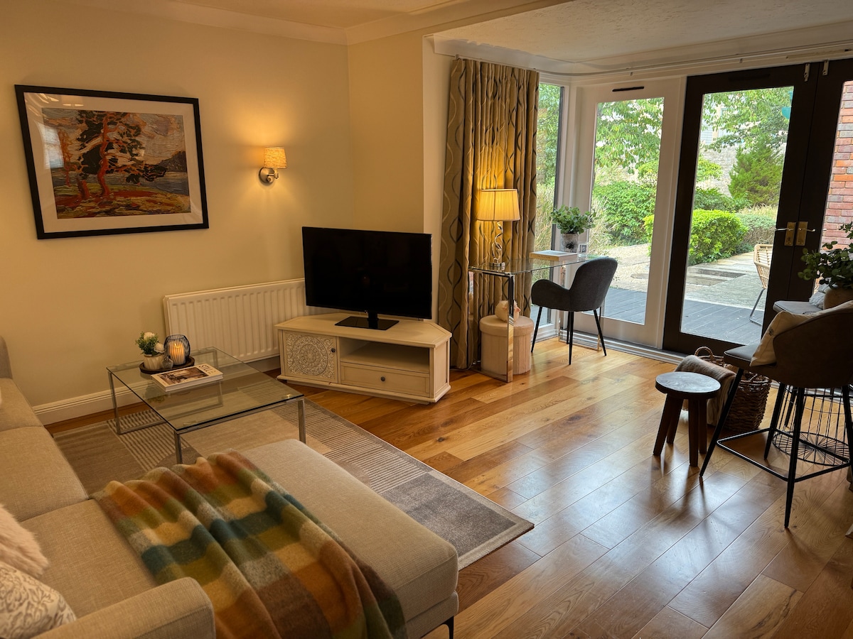 Stay at Folly Lodge: Beautiful Oxford Stay with Free Parking. This modern ground floor apartment offers two bedrooms, a stylish bathroom, and a bright living space. Relax on the private decking with riverside views and enjoy free onsite parking. Just a short walk to Oxford University, Christ Church, Westgate and the city centre, it’s the perfect base for graduations, river cruises, leisure or academic visits.